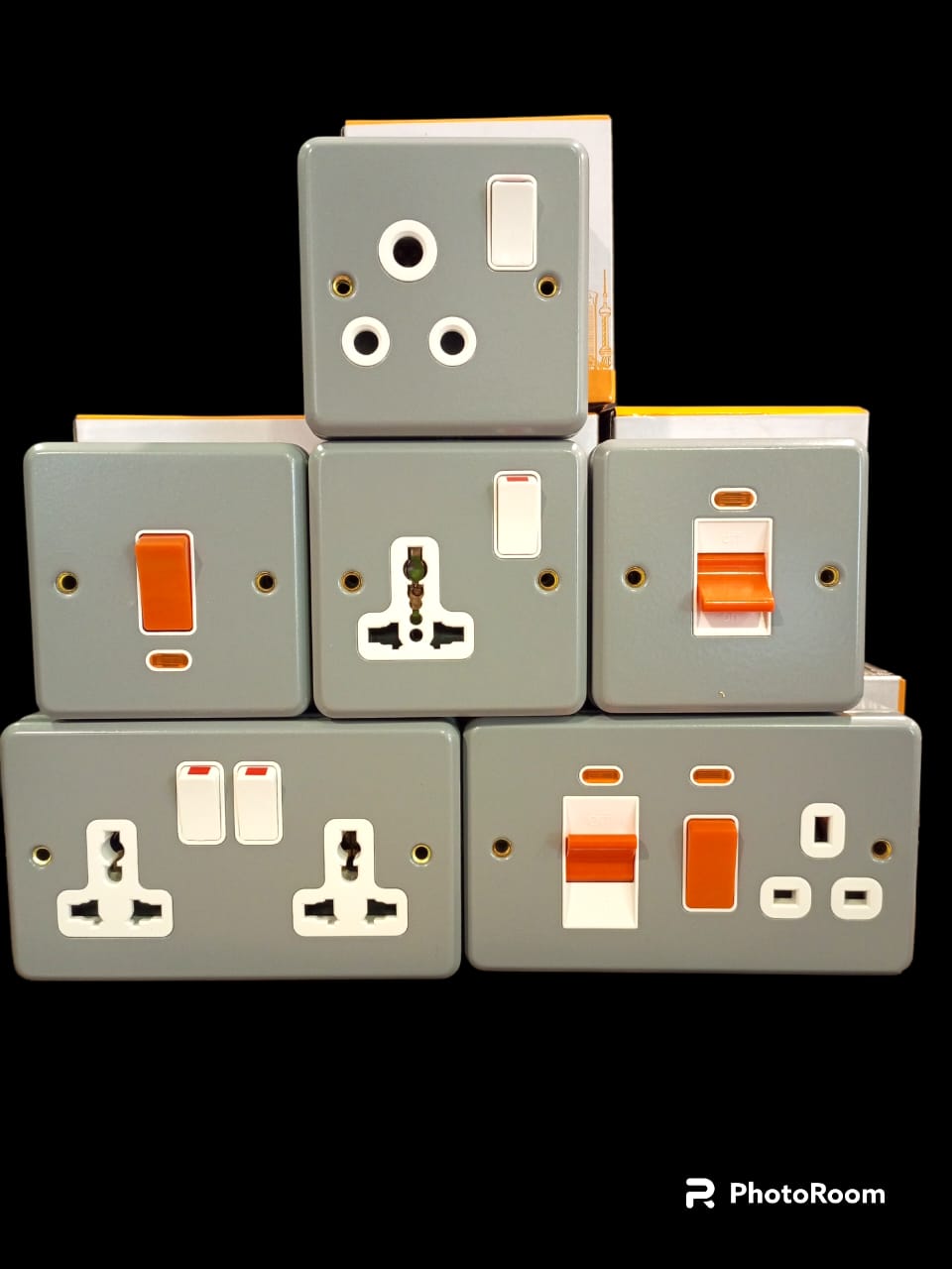 Metallic switch socket outlet available in single and double configurations for premium interiors.