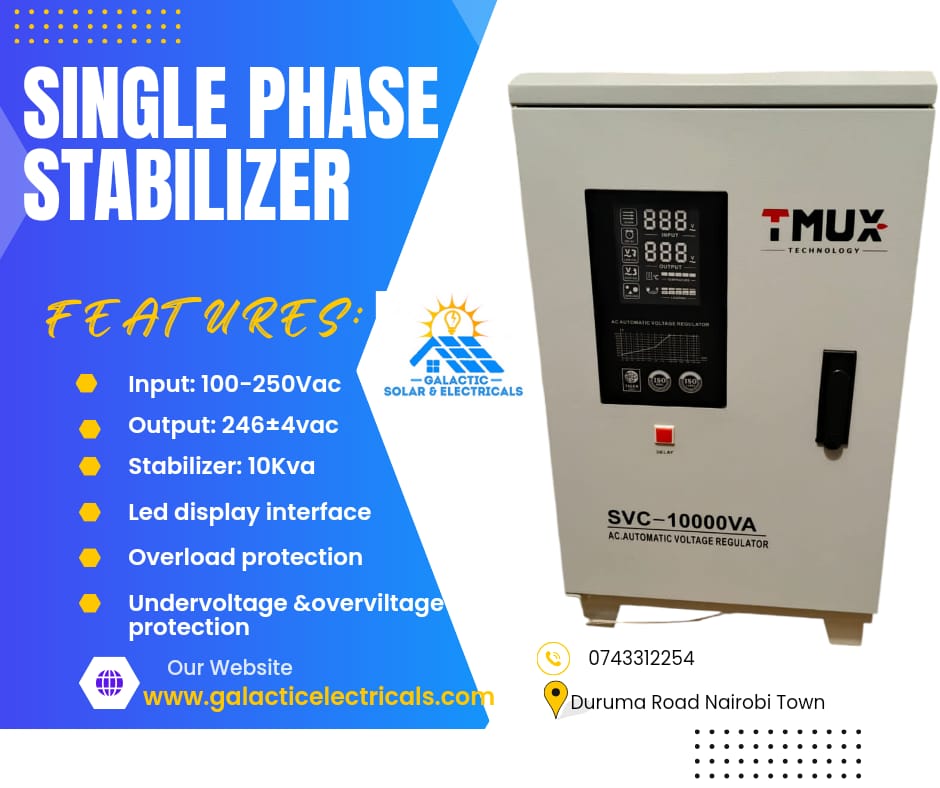 A 10kVA Single Phase Stabilizer is a high-capacity voltage regulation device designed to protect sensitive electrical equipment from fluctuations in the main power supply. In a single-phase system, it typically handles an input of 250Vac and ensures a steady output even when the grid voltage drops (brownouts) or spikes (surges).